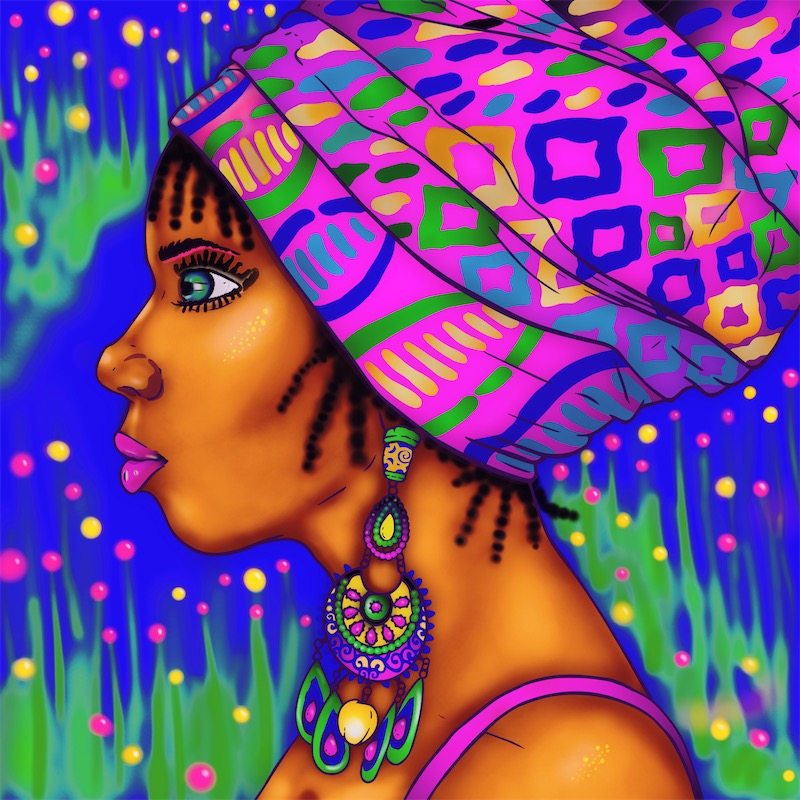 Bright and colorful! I love her hair! Gives her a different look!