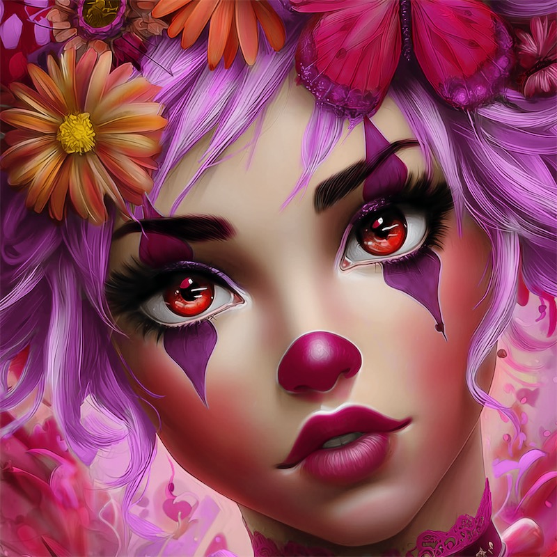 Wow stunningly gorgeous what a fabulous clown type picture mama Enzina the pink and yellow flowers look beautiful and her pink hair is so adorable with her eyes and nose and her lipstick the picture is fabulous my friend x🩷🩷🩷🩷❤️❤️❤️❤️🩷🩷🩷🩷❤️❤️❤️🧡❤️