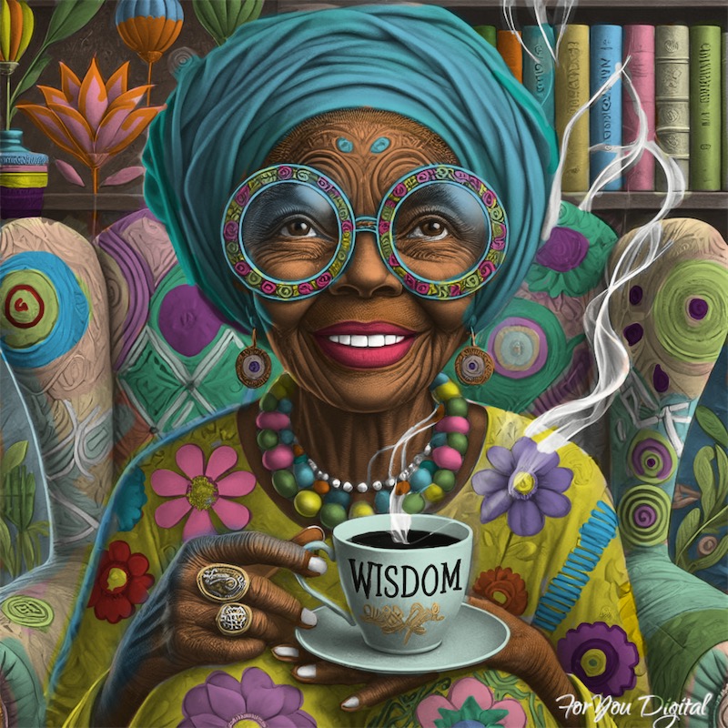 Cher this is amazingly stunning the colours are so gorgeous love her hair covering and her glasses are great net colourful necklace looks fantastic and her dress is wonderful I love her cup of wisdom to . Her big beautiful chair is totally awesome with her wee books around her it’s fabulous my lovely friend Cher ( not been on as much as I would like me and Gus picked up a bug from grandkids birthday party ( Gus more than me but I try to help him , x🩷🩷🩷🩷🩷🩷🩷🩷🩷🩷🩷🩷🩷🩷