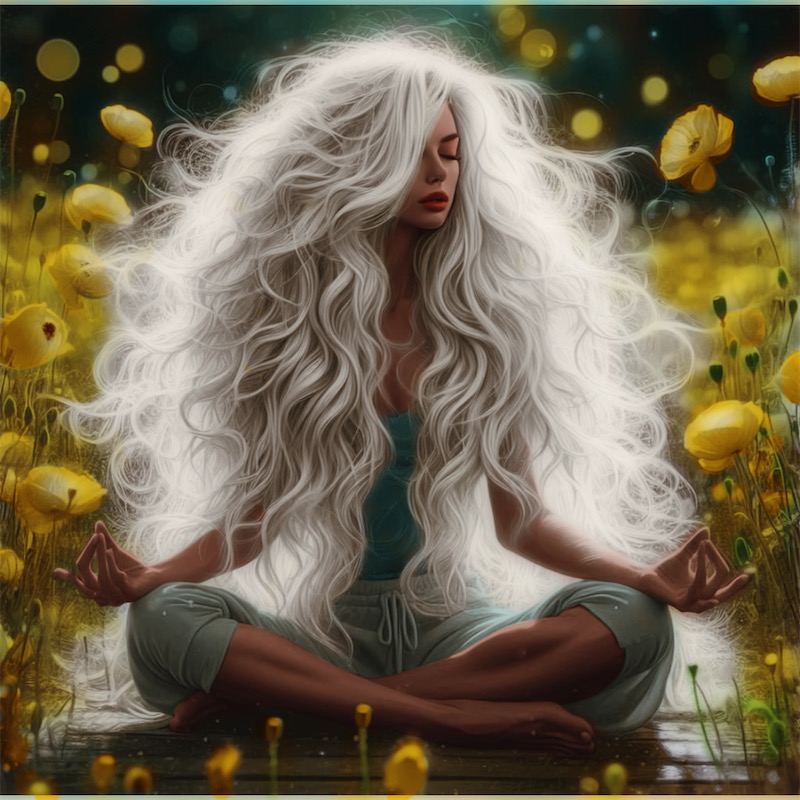Beautiful lady meditating. Exquisitely colored. Beautiful flowers ๐๐ผ๐๐ผ๐ฅ๐๐ฅ๐จ๐จ๐จ